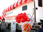 Мобильный комплекс заготовки крови украсили праздничными воздушными шарами