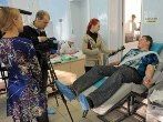 Сдающих кровь байкеров навестили представители СМИ