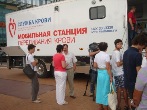 Несмотря на дождь, на площади города Калининграда работала мобильная станция забора крови