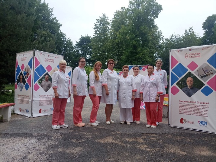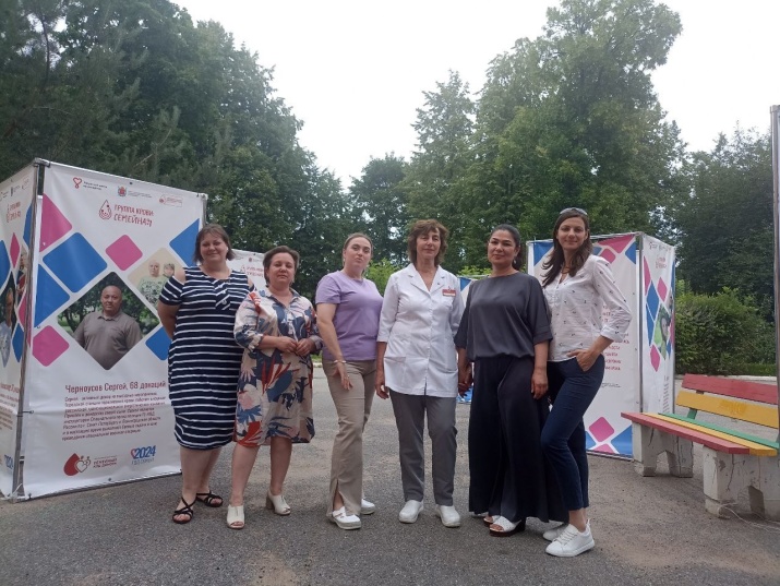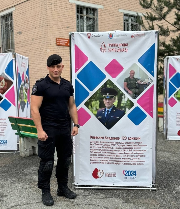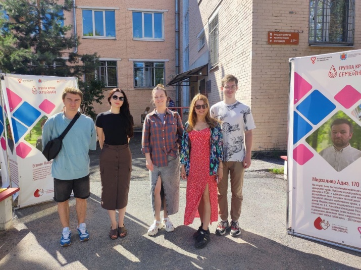 В сквере Городской станции переливания крови Петербурга продолжает свою работу уличная фотовыставка «Группа крови: семейная»
