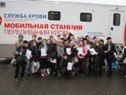 Студенты в очереди в мобильный комплекс заготовки крови