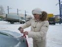 Марина Кларисс, собственный корреспондент «Российской газеты» по Кемеровской области, президент женского автоклуба, повязывает красную ленточку на автомобиль