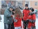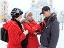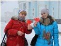 Волонтеры Службы крови на Соборной и Советской площадях дарили жителям столицы красные ленты и флаеры-приглашения на праздничный концерт «Спасибо, донор!»
