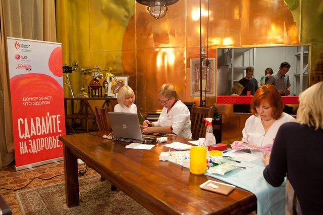 Временный пункт забора крови был развернут прямо в студии телеканала.