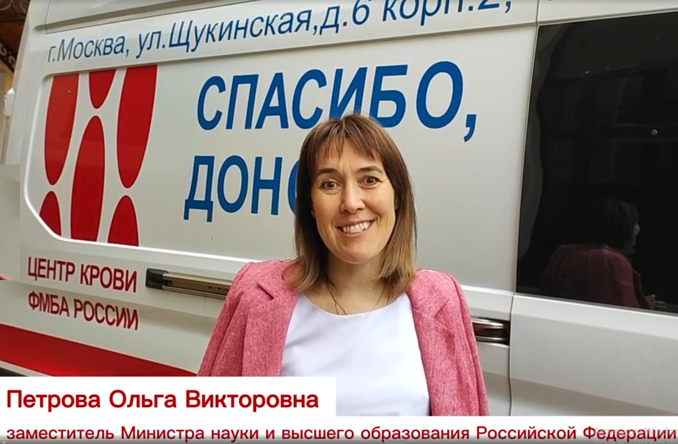Поздравление заместителя министра науки и высшего образования Российской Федерации Ольги Петровой с Национальным днем донора крови