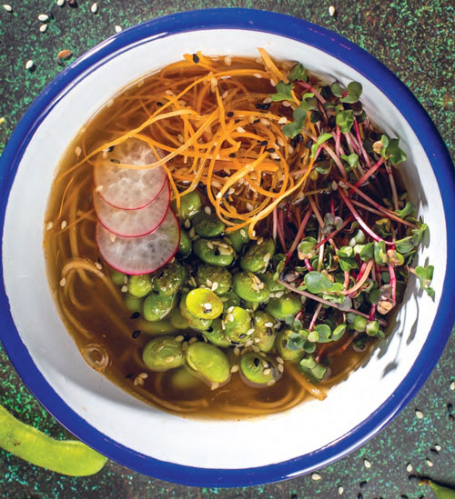Грибной бульон – та же история, все те же обожженные овощи, сушеные грибы; и я люблю добавлять лист водорослей комбу и пару листов нори. Попробуйте – будет незабываемо.