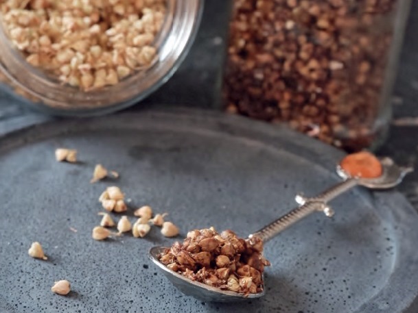 Этот рецепт — база не только для гранолы, зеленую карамелизованную гречку можно использовать как основу под многие десерты (вместо орехов или семечек) или добавку к конфетам. Карамелизованная гречка потрясающе и вкусно хрустит, добавит любому блюду пользу и изысканный вкус!