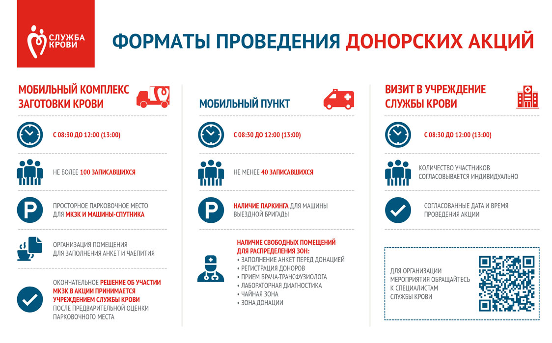Для организации Дня донора учреждения службы крови предлагают выбрать один из следующих форматов мероприятия: